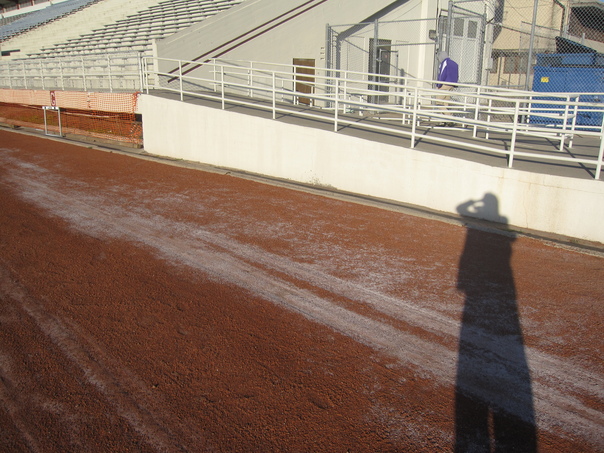 it is a horse racing court road the stadium is empty and one person is working at one side