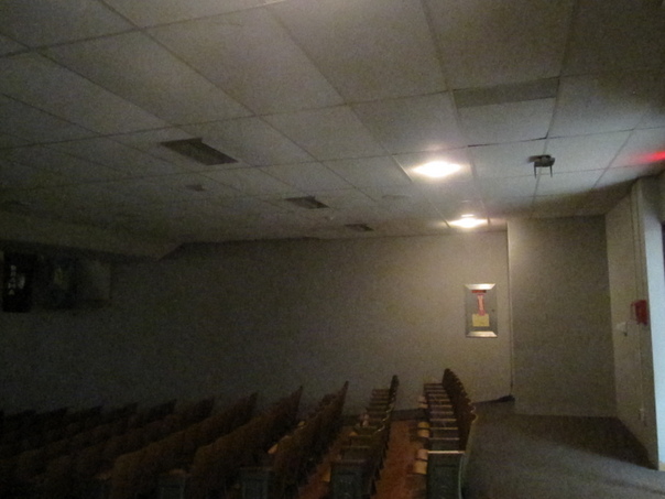 many chairs are here in this auditorium and shows one bright bulb