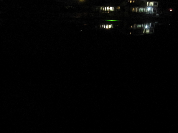 Picture of a house taken off in the distance. The lights in the house suggest someone may be home.