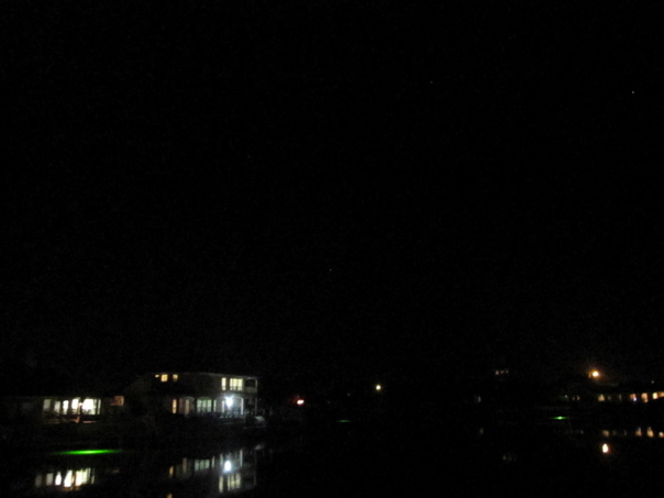 A House On The Water Is Viewed On Night Time.