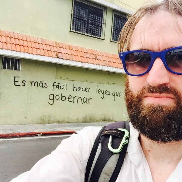 a man with a dark beard and blue and black sunglasses