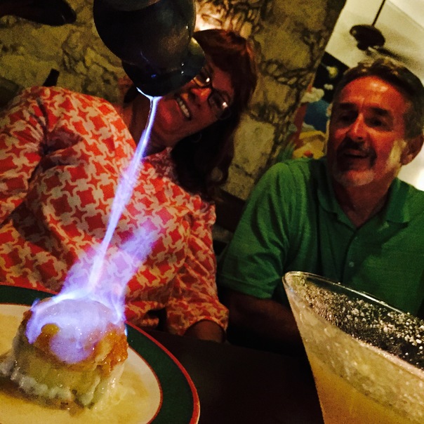 Here is an older couple enjoying watching their Baked Alaska being prepared.