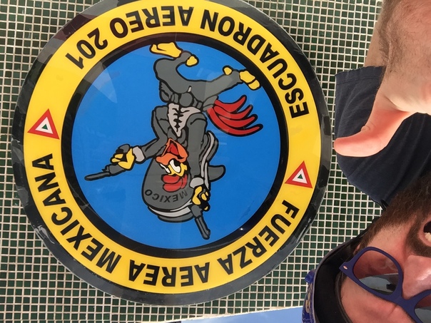 The man is upside down next to a duck emblem.