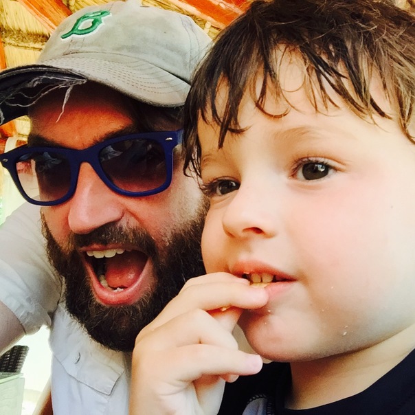 A beautiful picture of a man and a kid with man opening his mouth