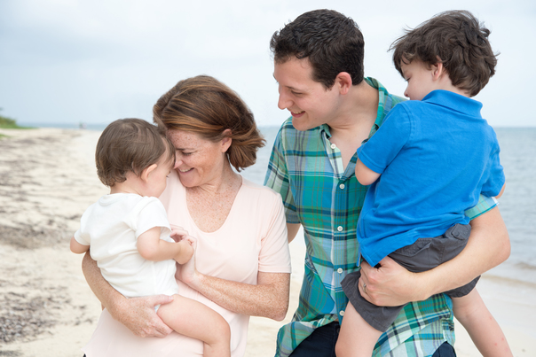 What a beautiful, happy, loving family of four smiling on the peaceful beach!