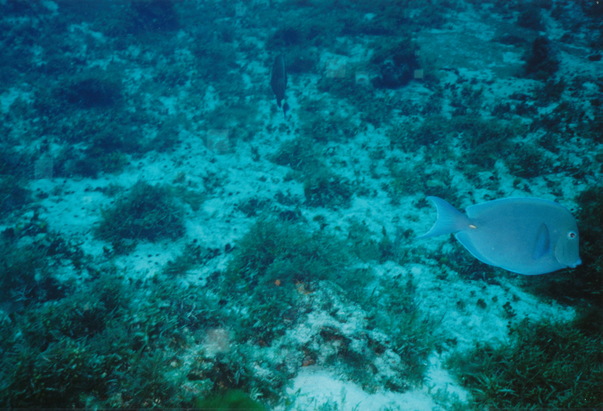 There is an animal that is under neath the water and there is lots of sand under the water |