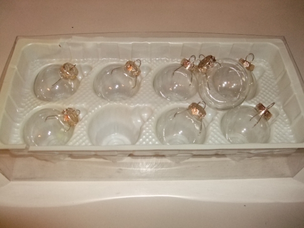 Here is a very simple, older set of 8 transparent Christmas ornaments.