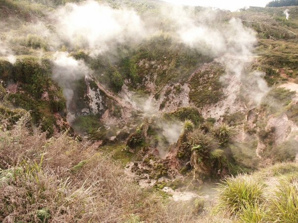 One of the many things to see around Lake Taupo was the so called Craters of the Moon. The site is basically a giant piece of land covered in hot pools and fumaroles (holes in the ground exposing hot gases). The smell of sulfur was ubiquitous and you could clearly feel the heat coming from the surrounding fumaroles.