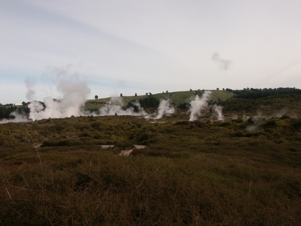 One of the many things to see around Lake Taupo was the so called Craters of the Moon. The site is basically a giant piece of land covered in hot pools and fumaroles (holes in the ground exposing hot gases). The smell of sulfur was ubiquitous and you could clearly feel the heat coming from the surrounding fumaroles.