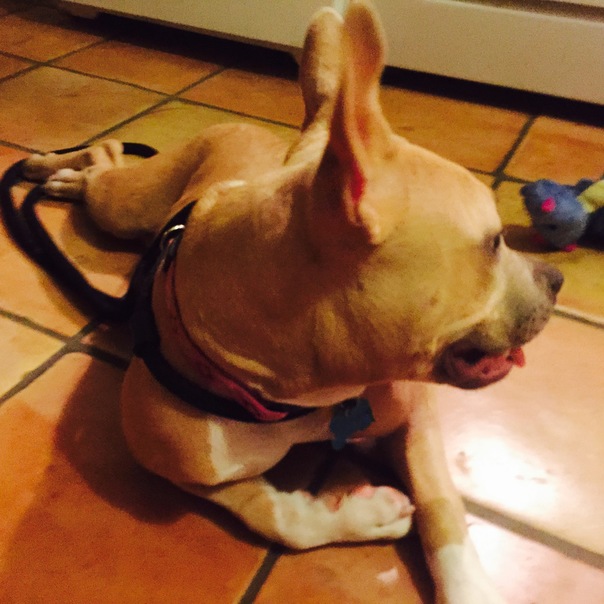 Brooke and I were laying in bed looking at bulldogs and pitbulls. We came across this adorable 10 month old pit named Cricket.