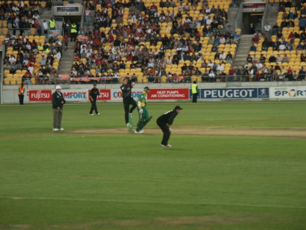 ![]() Crickett SA vs. NZ Wellington, New Zealand Since I had been getting to play a bit of cricket with some of Crockett's Motorola buddies, I was very excited to see my first full cricket match. As it happens, there was a bit of rain in the earlier part of the day and so the game was delayed and then ultimately shortened. I can't recall specifically how many overs it was shortened, but it turned out to be a very exciting game with New Zealand clinching the win by just a few balls in the very last over. |