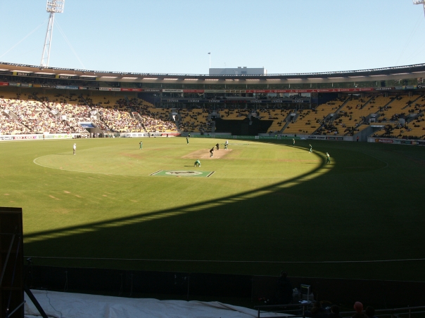 ![]() Crickett SA vs. NZ Wellington, New Zealand Since I had been getting to play a bit of cricket with some of Crockett's Motorola buddies, I was very excited to see my first full cricket match. As it happens, there was a bit of rain in the earlier part of the day and so the game was delayed and then ultimately shortened. I can't recall specifically how many overs it was shortened, but it turned out to be a very exciting game with New Zealand clinching the win by just a few balls in the very last over. |