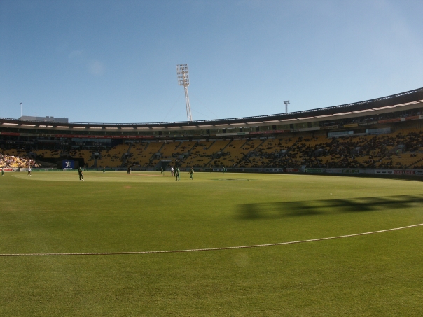 ![]() Crickett SA vs. NZ Wellington, New Zealand Since I had been getting to play a bit of cricket with some of Crockett's Motorola buddies, I was very excited to see my first full cricket match. As it happens, there was a bit of rain in the earlier part of the day and so the game was delayed and then ultimately shortened. I can't recall specifically how many overs it was shortened, but it turned out to be a very exciting game with New Zealand clinching the win by just a few balls in the very last over. |