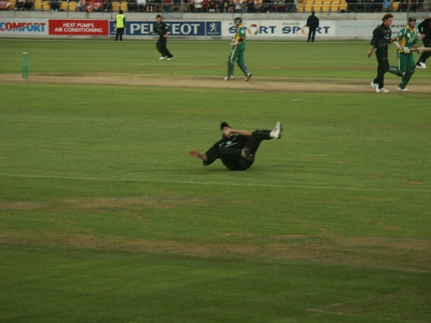 As it happens, there was a bit of rain in the earlier part of the day and so the game was delayed and then ultimately shortened. I can't recall specifically how many overs it was shortened, but it turned out to be a very exciting game with New Zealand clinching the win by just a few balls in the very last over.