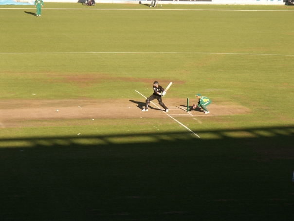 As it happens, there was a bit of rain in the earlier part of the day and so the game was delayed and then ultimately shortened. I can't recall specifically how many overs it was shortened, but it turned out to be a very exciting game with New Zealand clinching the win by just a few balls in the very last over.