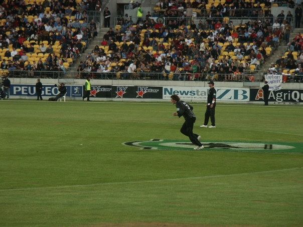 As it happens, there was a bit of rain in the earlier part of the day and so the game was delayed and then ultimately shortened. I can't recall specifically how many overs it was shortened, but it turned out to be a very exciting game with New Zealand clinching the win by just a few balls in the very last over.