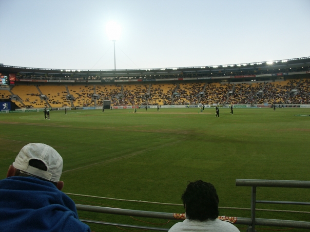 As it happens, there was a bit of rain in the earlier part of the day and so the game was delayed and then ultimately shortened. I can't recall specifically how many overs it was shortened, but it turned out to be a very exciting game with New Zealand clinching the win by just a few balls in the very last over.