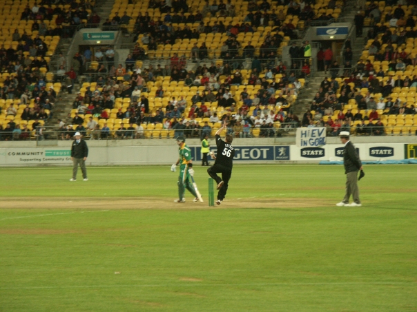 As it happens, there was a bit of rain in the earlier part of the day and so the game was delayed and then ultimately shortened. I can't recall specifically how many overs it was shortened, but it turned out to be a very exciting game with New Zealand clinching the win by just a few balls in the very last over.