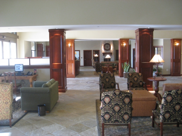 Appears to be a hotel lobby with very graphic chairs