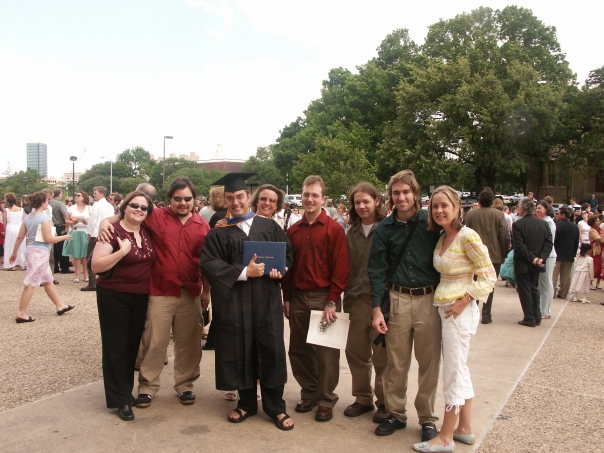 ![]() Dave's Graduation Austin, TX After seven very long years (eight if you count that quick tour in dual-credit high school classes), Dave finally got his computer science degree from St. Edwards. His entire family was in town for the event, and I'm sure everyone was all too thrilled to finally be done with it. In this album: Amy LaViolette, Aubrey G., Bob G., Dave G., Dobie, Dreux LaViolette, Eric Zavesky, Kathy G., Kevin Ludlow, Lauren G., Robert Siglock, Sallie G., Tisa Peterson |