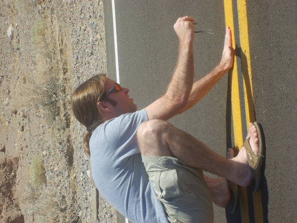 I think one of the joys of driving through the desert with the mini-van-esque vehicle we were in was that it had an outside temperature gauge. We kept watching the temperature climb higher and higher, reaching a maximum of about 110 or 112 degrees Fahrenheit.