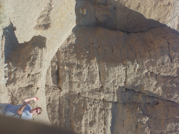 I think one of the joys of driving through the desert with the mini-van-esque vehicle we were in was that it had an outside temperature gauge. We kept watching the temperature climb higher and higher, reaching a maximum of about 110 or 112 degrees Fahrenheit.