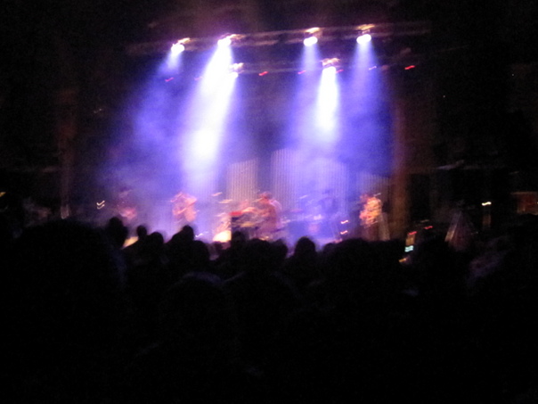 Focus lighting is arranged at the musical party. so many audiences are there. |