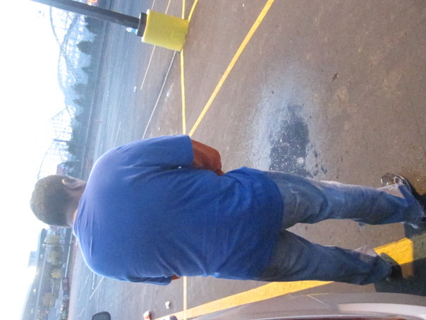 a gentle man is doing some thing on a ground in this picture |
