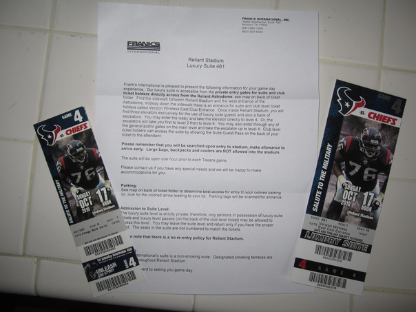 There are two tickets to a chiefs football game scheduled for October 17. |