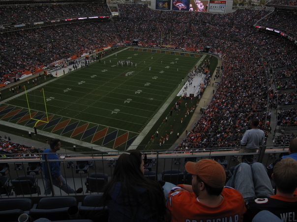 There is a picture of a football field with a stadium full of people. |