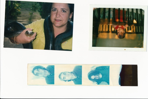 This picture is a collage of a baby, a teenager, and an older woman wearing a yellow vest. |