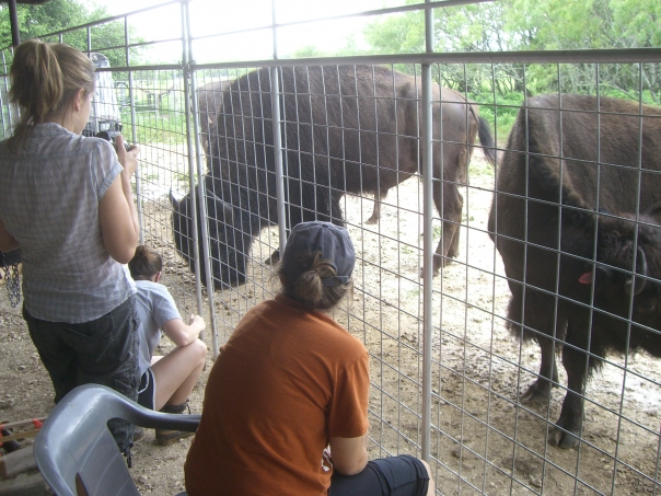 ![]() Double Nickel Bison Ranch Lampassas, TX Tracy and I followed her family out towards Lampassas where her uncle (her dad's brother) owns a fairly sizable buffalo ranch. I had a great time out there, even for the short while we were there, and have since been wanting to go back so that I can help do some work out in the pasture. We would have stayed for the rest of the day but I had already been committed to a performance at the Waldorf School with Sonora Lee. In this album: Art Adams, Bethany Zittrer, Buffalo, Dee Dee Adams, Gail Adams, Kevin Ludlow, Melissa Zittrer, Tracy Adams |