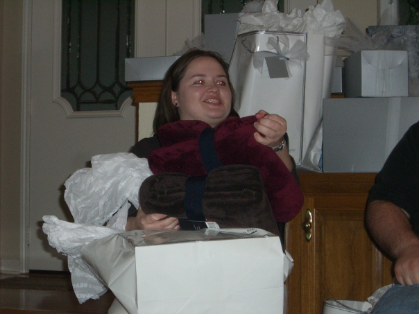 The bride-to-be loved the super-plush towels she received in rich brown and maroon.