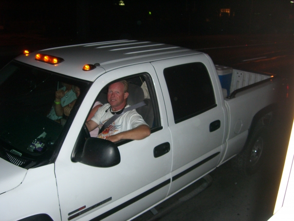 Everyone met over at my Village Oaks apartment sometime around 6pm. I knew someone who was able to rent me a special party bus with a fighter jet canopy welded to the top of it. We immediately started drinking on the bus and went to pick up Dreux at his house where he was bombarded with silly string and then forced to wear a prison suit and drag around an actual ball and chain (a 16 lb bowling ball).