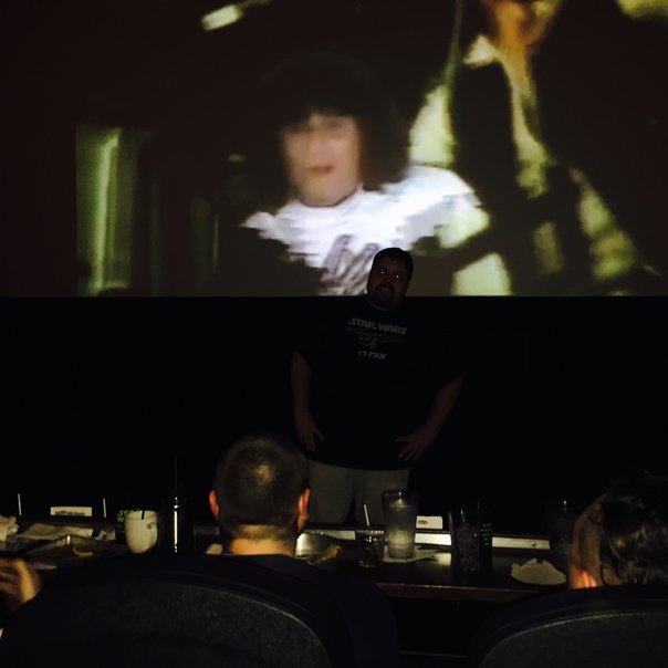 She magically rented out an entire theater at the Alamo Drafthouse and Dreux was allowed to invite 60 of his closest friends to come with.