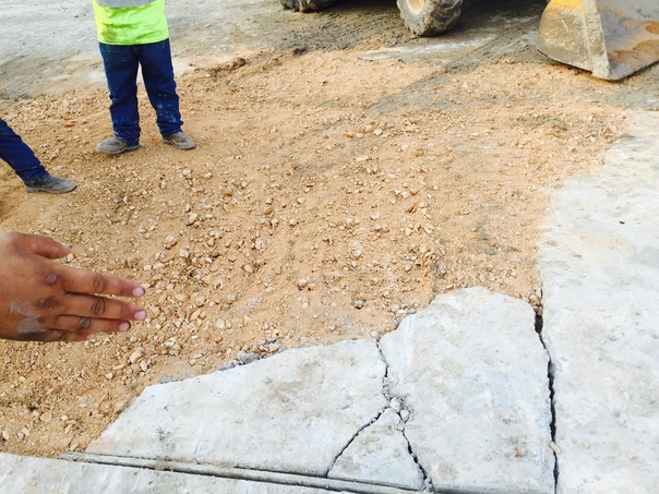 The workers jack hammered the heavy rocks to break them apart in order to make room for a new driveway.