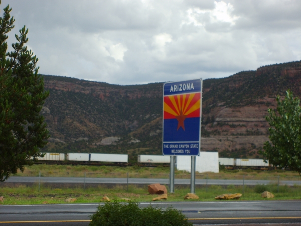 Entrance board welcoming people to Arizona, The Grand Canyon state.