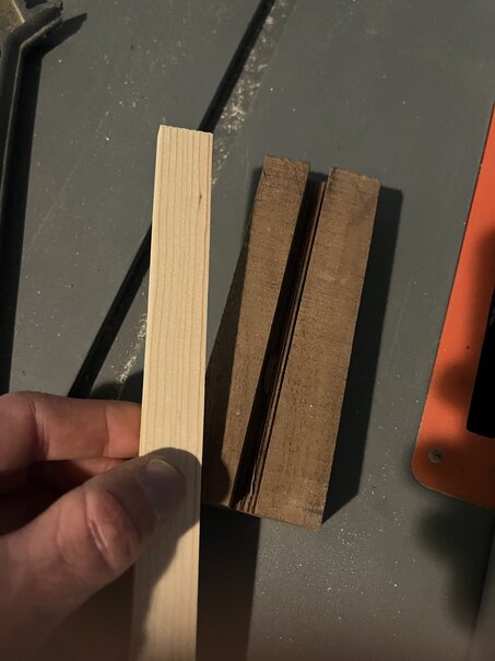 So I took a small piece of the remaining walnut, performed a 1/4" deep dado cut down the center line, and fit it with a matching piece of pine.