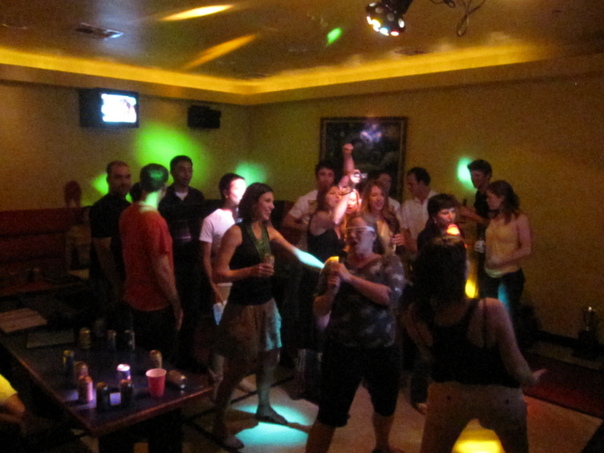 After hours of eating crawfish and drinking beer in the sun, the party was moved to Shangri-La in east Austin where we had a host of pizzas delivered to the bar. Once the bar started closing down around 2am, we moved the entire party up to Austin Karaoke in north Austin.