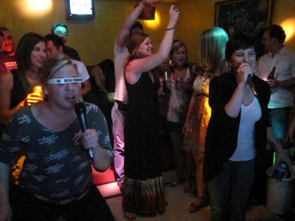 After hours of eating crawfish and drinking beer in the sun, the party was moved to Shangri-La in east Austin where we had a host of pizzas delivered to the bar. Once the bar started closing down around 2am, we moved the entire party up to Austin Karaoke in north Austin.