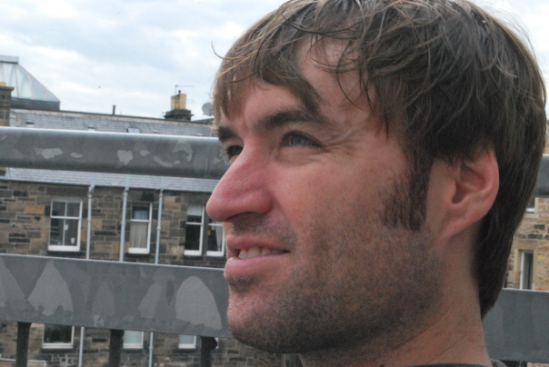 The man has a shaggy hairstyle and has scruff on his face for a beard.
