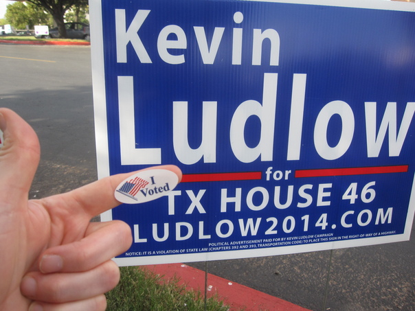 A hand with a sticker on a finger is in front of a blue sign with white writing. |