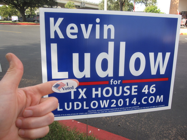 A supporter of Kevin Ludlow showing everyone that he voted for his candidate! |