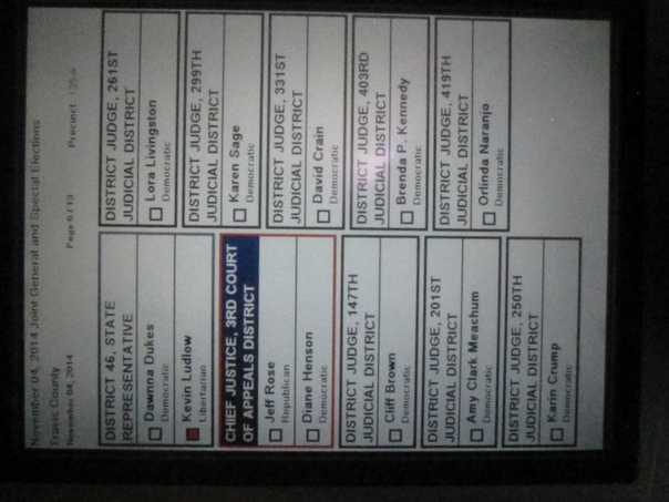 The lengthy and somewhat confusing ballot was broken up into highlighted boxes that separated election races by category. |