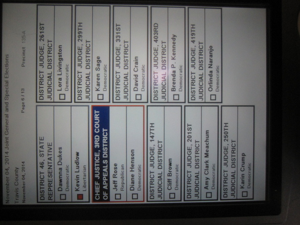 Voting ballot with the box next to Kevin Ludlow checked in red. |