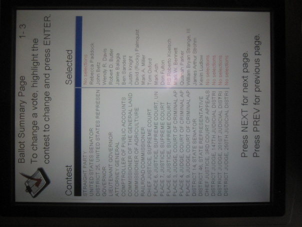A sideways view of a Ballot Summary Page on a digital screen. |