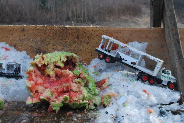 I bought a watermelon on Caroline's birthday so that we could take turns shooting it up on the range.