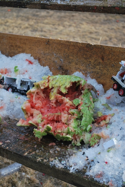 I bought a watermelon on Caroline's birthday so that we could take turns shooting it up on the range.