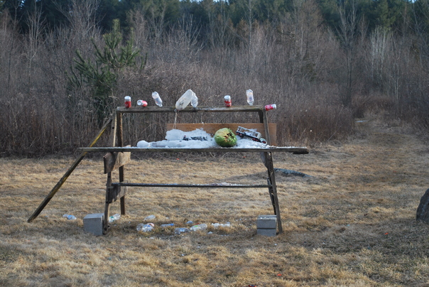 I bought a watermelon on Caroline's birthday so that we could take turns shooting it up on the range.