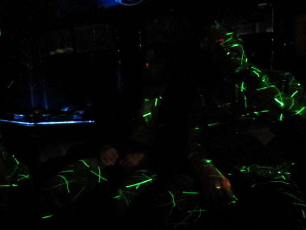 Roaming in a dark street is pleasant to anyone since there are dimmed green lights glowing here and there |